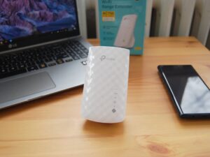 The extender works with any router but performs best when paired with the TP-Link Archer A7 Router, enabling a seamless mesh network. It also includes a Fast Ethernet port for direct, stable connections to laptops, PCs, or gaming consoles, and can turn a wired internet connection into a wireless access point or act as a wireless adapter for wired devices.
