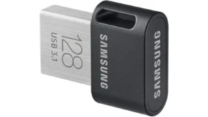 Ideal for a variety of uses—from transferring files between devices to storing media for your car’s audio system—the 128GB capacity ensures plenty of space. The Samsung Fit Plus is also notable for its speed, with read speeds up to 400MB/s and USB 3.1 support, which means you can move large files quickly. Additionally, it’s built to last, featuring a waterproof, shock-proof, and temperature-proof design.