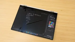 While it doesn’t have a dedicated graphics card, the Intel Iris Xe integrated graphics provides enough power for casual gaming and movie watching on its stunning 13.3-inch AMOLED screen with a 1080p resolution and 60Hz refresh rate. The 360-degree hinge design allows for seamless transitions between laptop and tablet modes, and the S Pen compatibility adds even more versatility for note-taking and drawing.